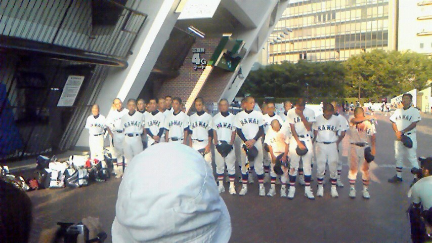 24日朝3時20分、外で新聞配達の単車の音が聞こえている頃、家を出た。向かう先は河合中学校である。今年、河合中学校野球部が創立以来初めて、全国野球大会に出場した。その応援バスの集合時間が3時30分であり、何とか目をこすりながら、迷惑をかけないですむ時間に到着することができた。