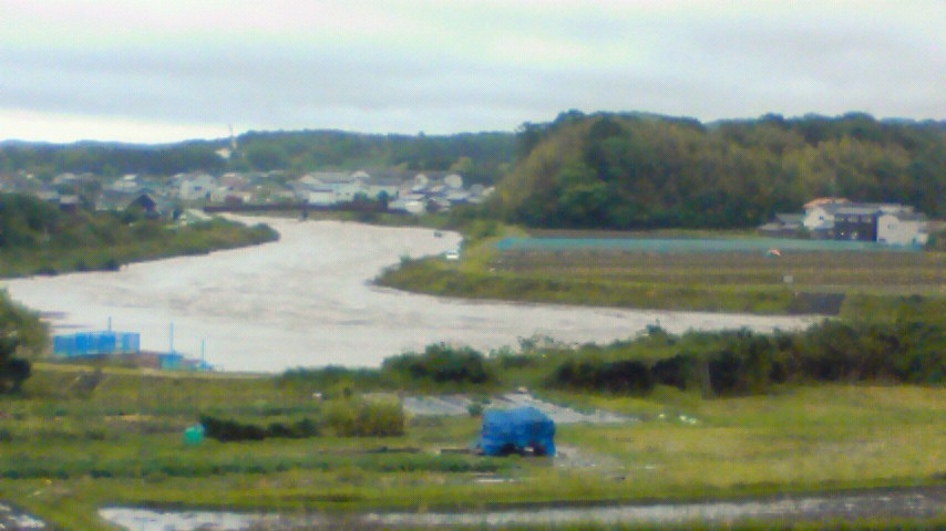 粟田橋東側の畑11時3分 ビニールハウスが浸かってしまっています。