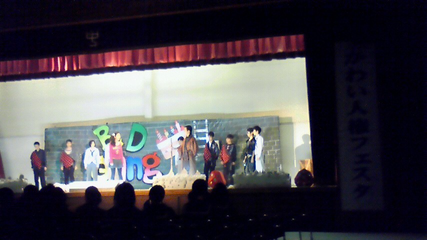 本日、河合中学校のオープンスクールで人権フェスタ2009を参観しました。プログラムは人権弁論発表、学習発表、3年生の劇です。今年は小中一貫教育を行っていることもあり、6年生も学習発表したそうです。私は送れて行ったので、劇しか観れませんでした。